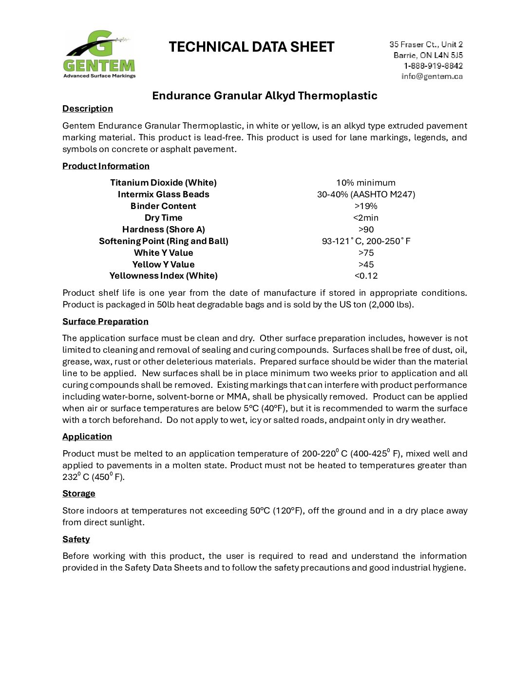Granular Thermoplastic Specifications Granular Thermoplatic Product Data Sheets (2 files) Download full PDS (Alkyd) Download full PDS (Hydrocarbon) Granular Thermoplatic Safety Data Sheets (2 files) Download full SDS (Alkyd) Download full SDS (Hydrocarbon)